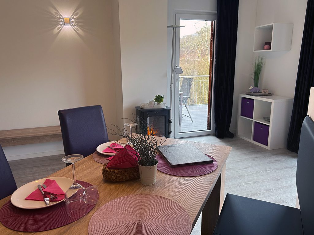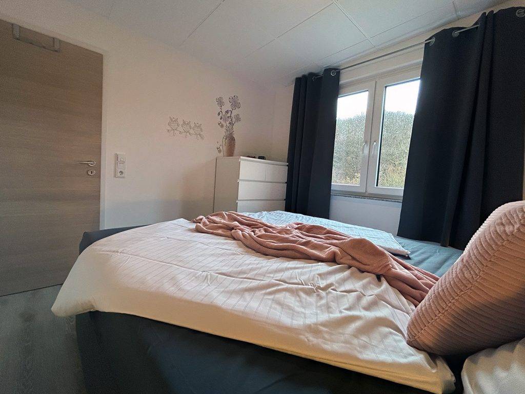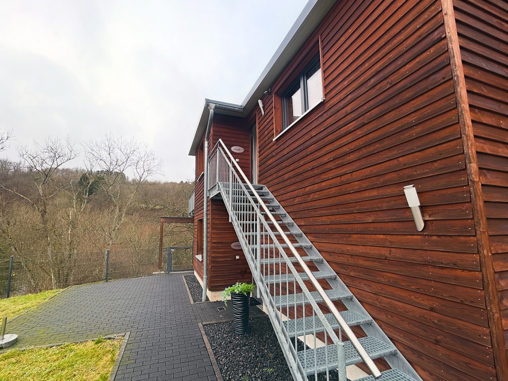 Die Ferienwohnung Auszeit befindet sich auf der rechten Seite unseres Ferienhauses in der ersten Etage. Beachten Sie bitte, dass der Zugang zum Ferienhaus über eine Treppe erfolgt und somit nicht barrierefrei ist.